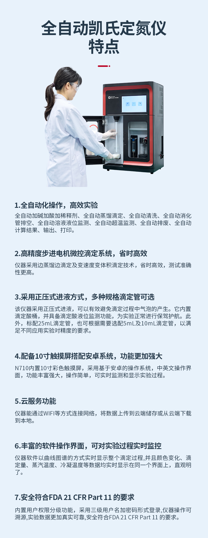 儀器采用邊蒸餾邊滴定及變速度變體積滴定技術,省時高效,測試準確性更高。