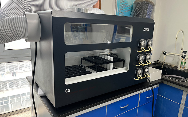 全自動石墨消解儀:配備先進的程序控溫技術和自動化控制系統,可自動完成預消解、高溫消解及趕酸過程。操作人員只需設置好程序,儀器就能自動完成加酸、消解、趕酸、搖勻、定容和酸霧排放等全過程。