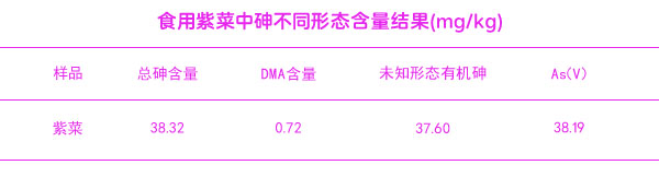 采用上述的方法對紫菜(各6份)進行測定,測定結果為3次測定的平均值及標準偏差范圍,結果見表【石墨消解樣品的測定結果】。紫菜總砷含量范圍為33.5~72.1mg/kg。